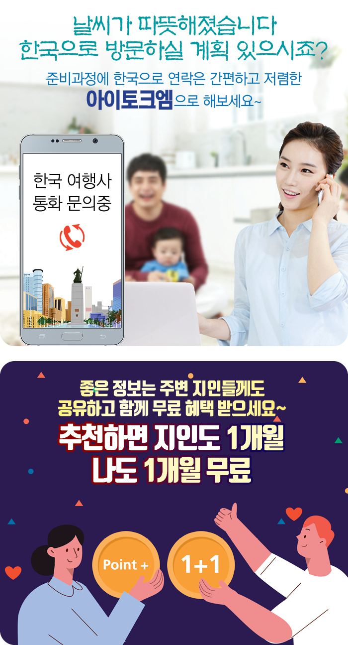 한국으로 연락은 간편하고 저렴한 아이토크엠으로~