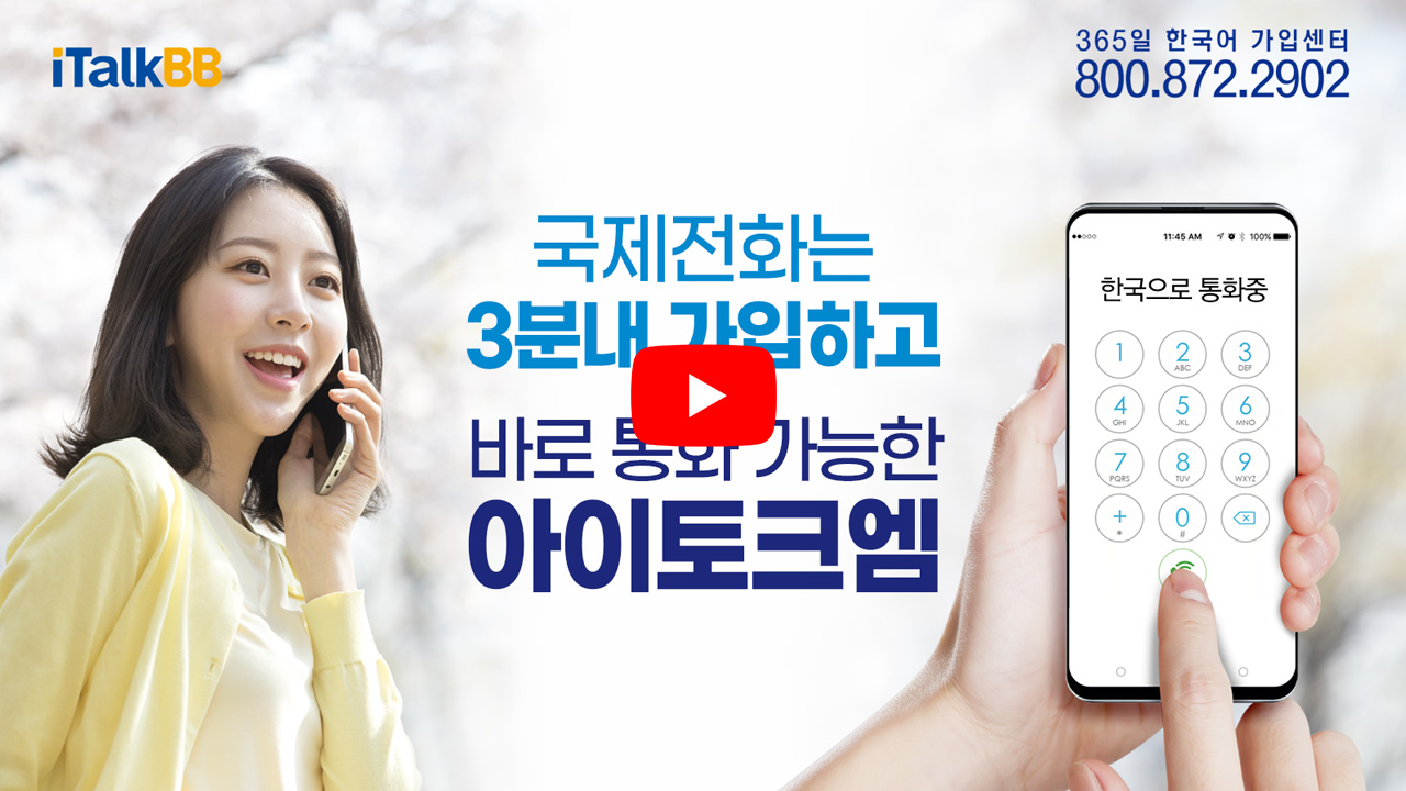 이번주 뉴스레터는 [갑자기 한국의 친구, 친척, 사업, 여행사, 관공서, 은행이나 직구 등 관련 전화 통화가 필요할 때 3분내 가입하고 바로 통화 가능한 아이토크엠]에 대해 알아보도록 하겠습니다.